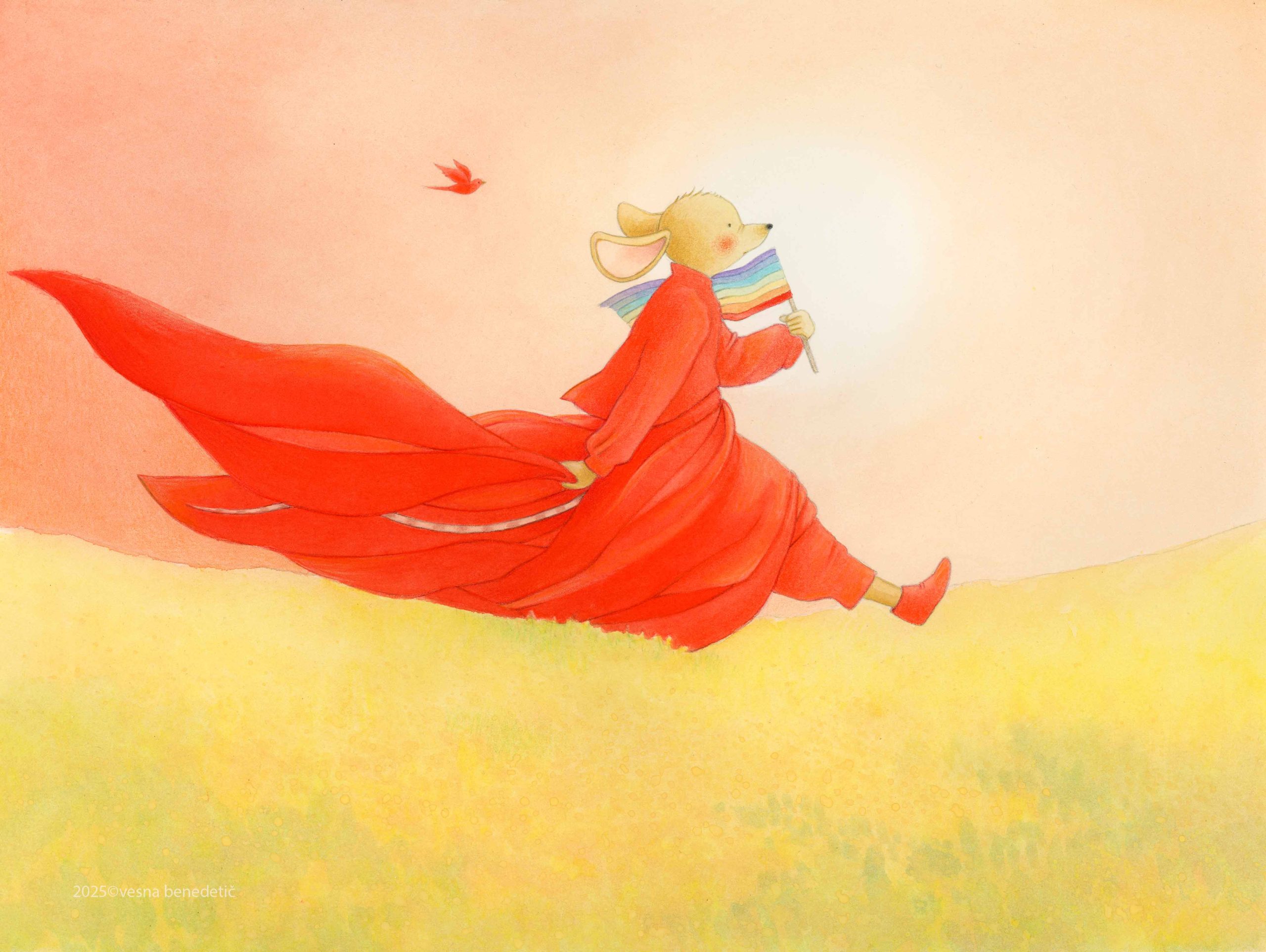 Mere (višina x širina): približno 28 x 38 cm Mešana tehnika (gvaš, barvni svinčniki) 2025